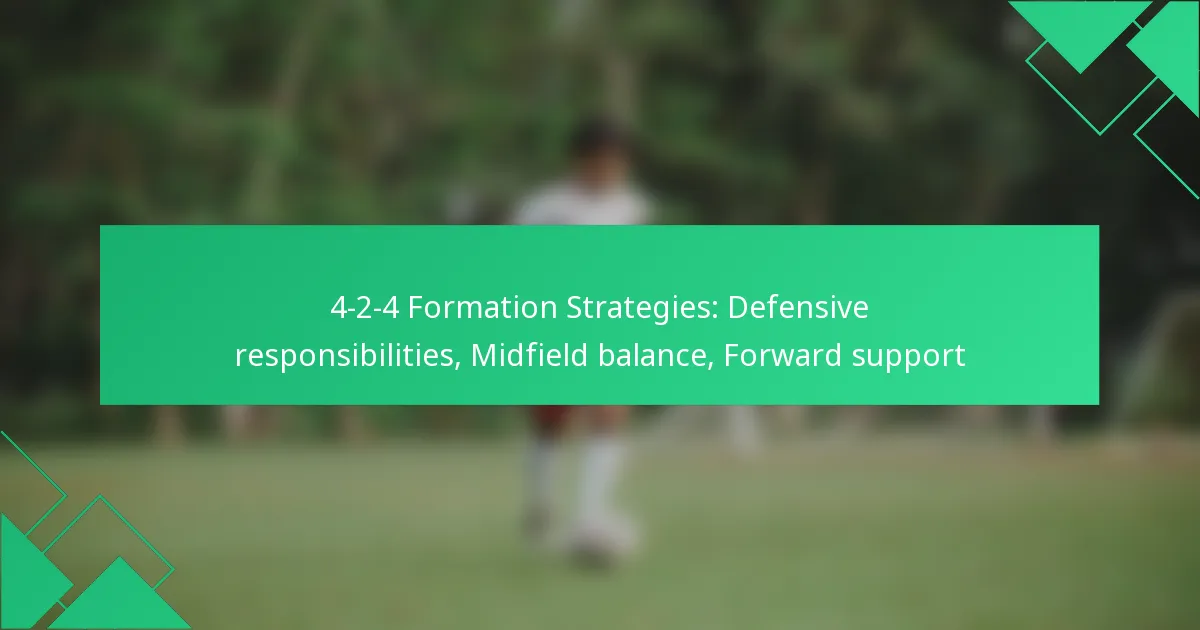 The 4-2-4 formation is a dynamic soccer strategy that balances offensive aggression with defensive solidity, featuring four defenders and four forwards. Effective implementation of this formation can involve various defensive tactics, such as zone marking, which focuses on area coverage, or man-to-man defence, where players are assigned specific opponents. Successful execution of these strategies relies heavily on clear communication among team members to maintain organisation and effectiveness on the field.